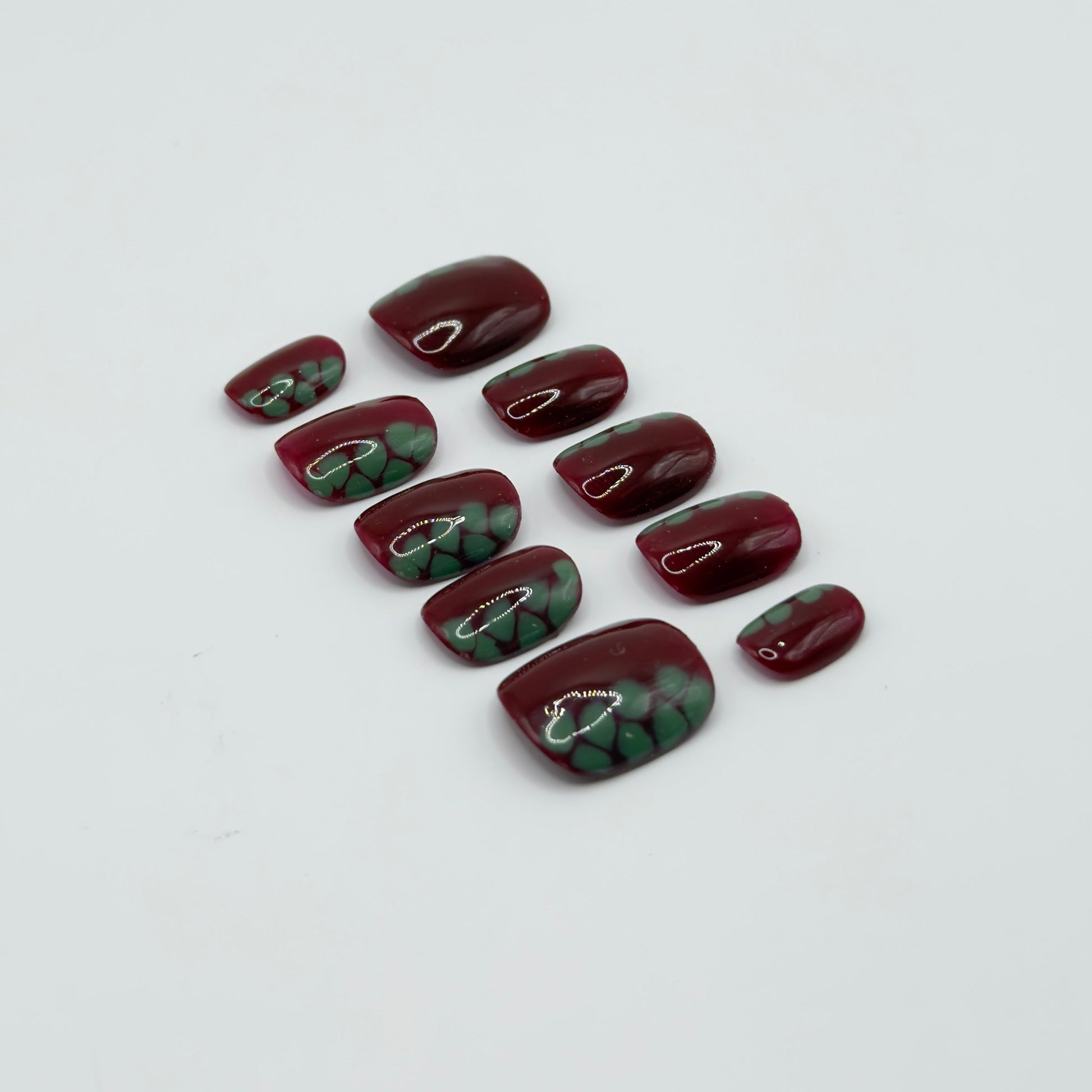 The nail tips are formulated out of soft gel to provide you with a comfortable and lightweight nail enhancement. All press ons are made with gel nail polish. My press ons may last for about 1-2 weeks and can be used multiple times, if properly adhered, properly removed and taken care of properly.