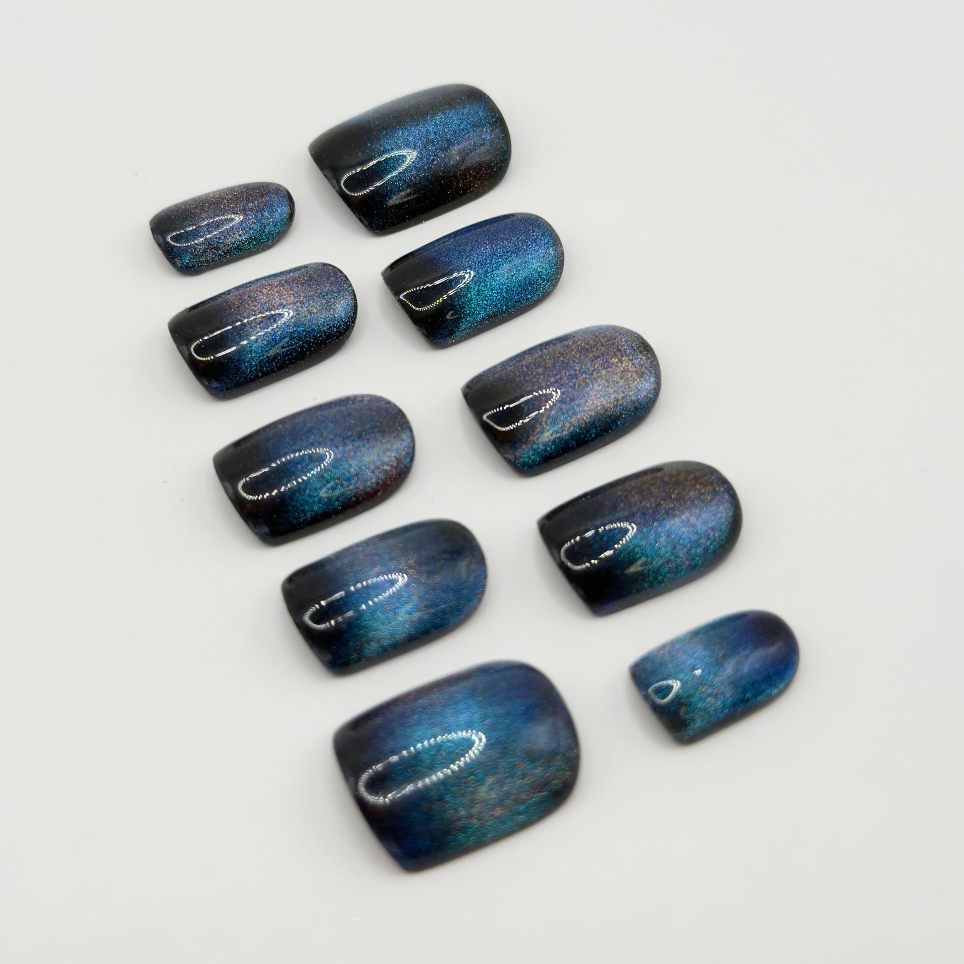 The nail tips are formulated out of soft gel to provide you with a comfortable and lightweight nail enhancement. All press ons are made with gel nail polish. My press ons may last for about 1-2 weeks and can be used multiple times, if properly adhered, properly removed and taken care of properly.